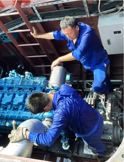 在悶熱且狹小的機艙內(nèi),一個簡單的動作,難度系數(shù)都要成倍增加,考驗的不僅是船舶電工的體力,還有毅力。