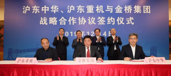 ????在楊金成、翁祖亮、馮永強、杭迎偉的共同見證下,中國船舶集團旗下滬東中華造船(集團)有限公司、滬東重機有限公司與上海金橋(集團)有限公司簽訂了戰略合作協議。