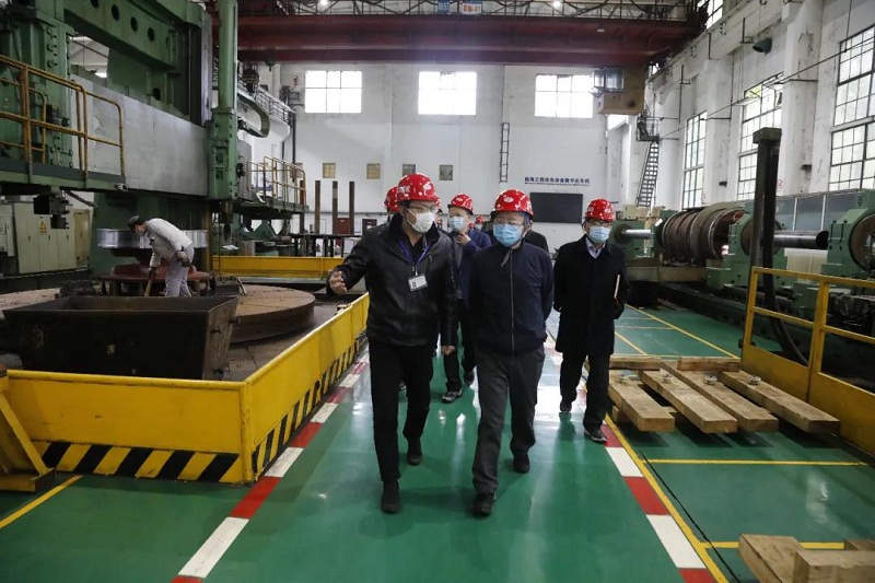 ????王江平參觀了武漢船機(jī)展示廳,實(shí)地考察了主要生產(chǎn)現(xiàn)場(chǎng)、科研試驗(yàn)現(xiàn)場(chǎng),并聽(tīng)取了企業(yè)主要產(chǎn)業(yè)板塊發(fā)展、復(fù)工復(fù)產(chǎn)等情況匯報(bào)。他充分肯定了武漢船機(jī)在服務(wù)國(guó)防建設(shè)、積極推進(jìn)技術(shù)創(chuàng)新、促進(jìn)行業(yè)發(fā)展等方面做出的努力,同時(shí)勉勵(lì)武漢船機(jī)再接再厲,慎終如始抓好疫情防控,突出工作重點(diǎn),克服實(shí)際困難,確保安全生產(chǎn),為國(guó)防事業(yè)發(fā)展作出更大貢獻(xiàn)。