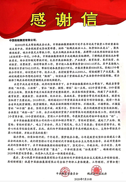 近日,中國船舶集團收到了一封來自云南鶴慶的感謝信。從初識到現(xiàn)在,我們已在脫貧攻堅的戰(zhàn)場上,攜手奮戰(zhàn)19載,如今正一鼓作氣攻克最后的貧困“堡壘”。