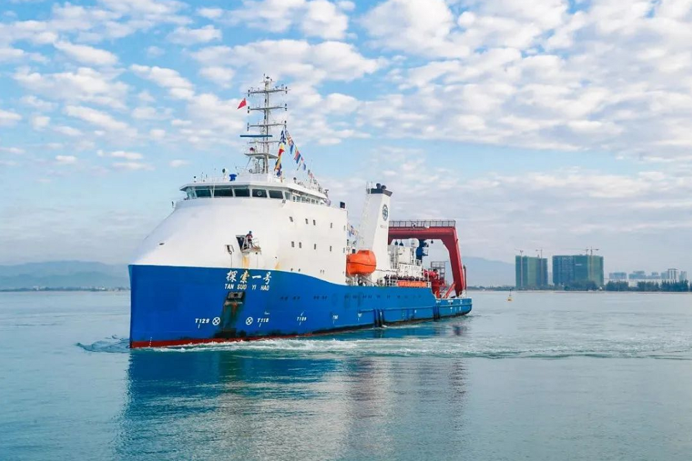 為支持“奮斗者”號(hào)完成海試,本次海試任務(wù)采用了“探索一號(hào)”支持船和“探索二號(hào)”保障船“雙母船”保障模式。