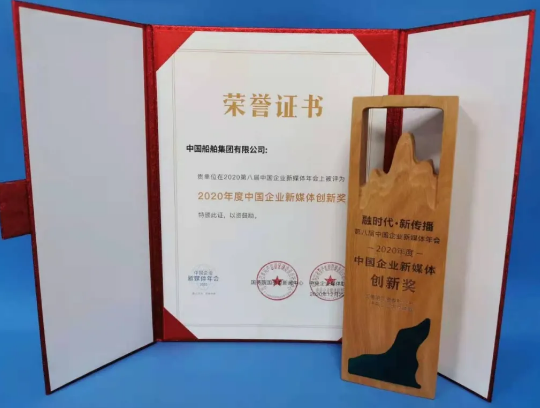12月22日,由國務院國資委新聞中心、中央企業媒體聯盟聯合主辦的2020第八屆中國企業新媒體年會在北京舉行。本屆年會主題聚焦“融時代 · 新傳播”,中國船舶集團有限公司因在“奮斗者”號融媒體報道中的創新表現,榮獲“2020年度中國企業新媒體創新獎”。