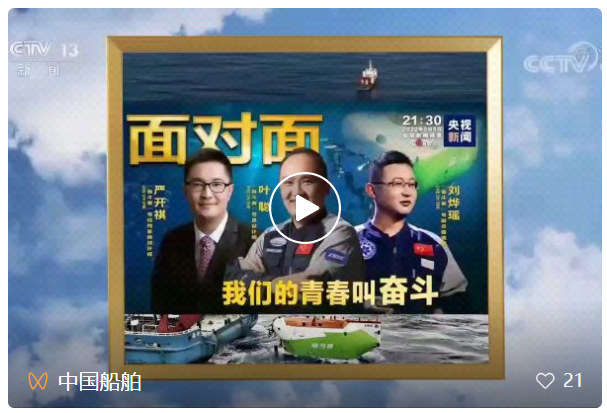 5月8日,央視《面對面》節目聚焦“奮斗者”號研發團隊。