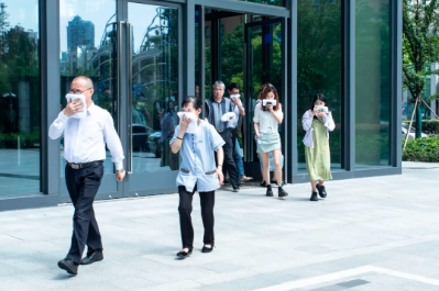 本次演練模擬總部1#樓電梯間、2#7層會(huì)議室發(fā)生火災(zāi),物業(yè)人員先后用滅火器、樓層消防水系統(tǒng)實(shí)施初期火災(zāi)撲救,火勢(shì)無法控制后立即拉響疏散警報(bào),同時(shí)向最近的消防站請(qǐng)求支援。全體人員按照疏散路線緊急有序完成了疏散。