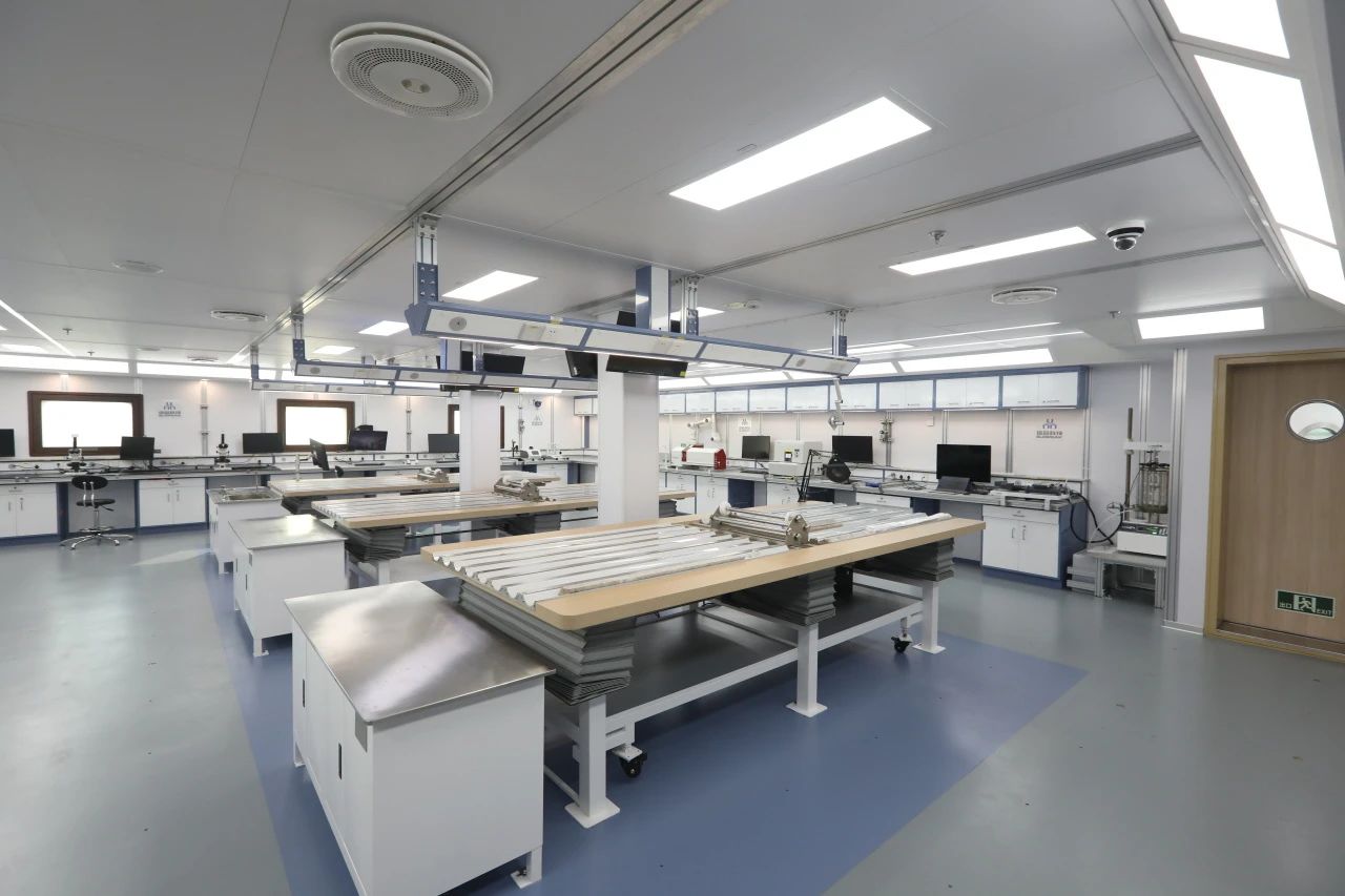 “夢(mèng)想”號(hào)大洋鉆探船建有海洋領(lǐng)域全學(xué)科船載實(shí)驗(yàn)室,涵蓋九大實(shí)驗(yàn)功能,并配置船載巖心自動(dòng)傳輸存儲(chǔ)系統(tǒng)。