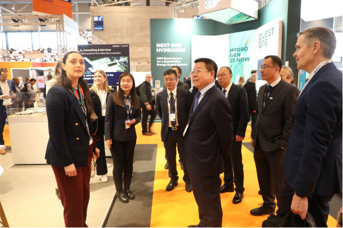 展會期間,中船集團舉辦了電解水制氫設備、超高溫大型工業熱泵、智能裝備解決方案等30余場專題推介會,發布了全球單體最大3000立方電解水制氫設備,與德國、瑞典兩家客戶簽約電解水制氫項目合作協議,與全球眾多客戶進行了技術與產品交流,深入推進國際市場營銷,進一步提升了中船集團新興產業的國際影響力。此外,中船集團還組織相關成員單位赴德國、法國等地,與林德、德希尼布和施耐德等全球知名跨國企業進行了推介交流與合作洽談,進一步鞏固合作關系,為后續深化合作奠定基礎。同時,組織與中國國機集團、國家能源集團等中國企業,就展覽展會、品牌宣傳、國際項目合作等方面進行交流,攜手拓展國際市場。