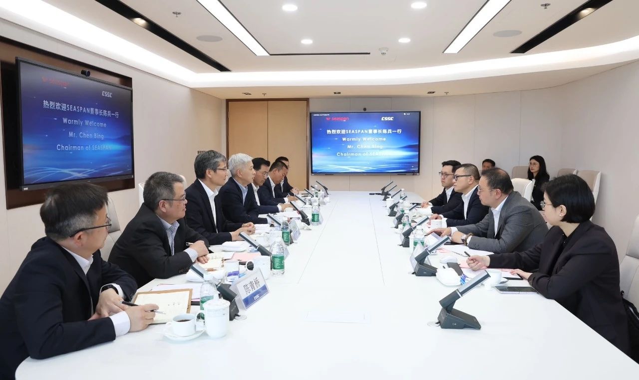 徐鵬對(duì)陳兵一行的來(lái)訪(fǎng)表示歡迎,并感謝Seaspan公司對(duì)中船集團(tuán)的長(zhǎng)期信任與支持。徐鵬表示,中船集團(tuán)將持續(xù)提升自身綜合能力,努力為客戶(hù)提供更優(yōu)質(zhì)的產(chǎn)品和服務(wù)。Seaspan公司是全球最大的獨(dú)立集裝箱船租賃船東公司,與中船集團(tuán)在長(zhǎng)期合作中結(jié)下了深厚友誼。未來(lái),希望雙方建立常態(tài)化溝通交流機(jī)制,在船舶建造與升級(jí)改造、國(guó)際船海市場(chǎng)拓展、船舶全生命周期運(yùn)維、綠色能源開(kāi)發(fā)等方面持續(xù)深化進(jìn)一步合作,共同為行業(yè)持續(xù)健康發(fā)展作出應(yīng)有貢獻(xiàn)。