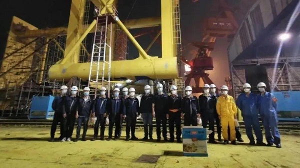 ????同一天,隨著最后一塊防沉平臺箱梁分段順利吊裝,黃埔文沖非船團(tuán)隊(duì)已經(jīng)連續(xù)奮戰(zhàn)十天十夜。至此,為保利長大公司建造的明陽華西單樁穩(wěn)樁平臺主體工程