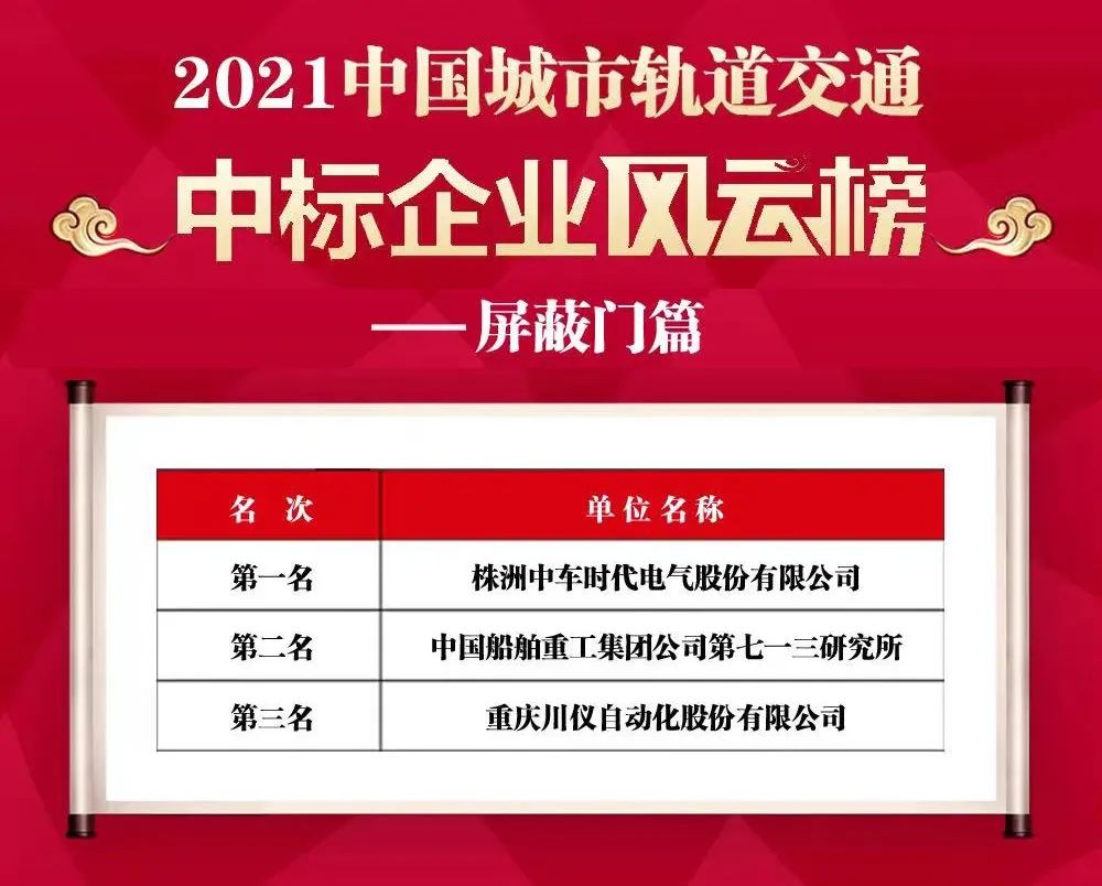 3月20日,中國船舶第七一三研究所成功中標成都軌道交通27號線一期工程站臺門系統集成及安裝項目。