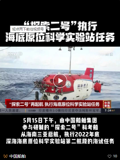 5月15日下午,我國“探索二號”科考船從海南三亞啟航,執(zhí)行2022年度深海海底原位科學(xué)實(shí)驗(yàn)站第二航段的海試任務(wù)。