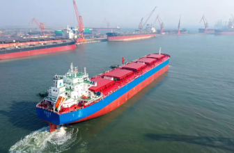 近日,大連造船下屬山船重工為中信金租公司建造的6.5萬(wàn)噸散貨船3號(hào)船試航凱旋。