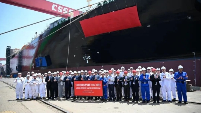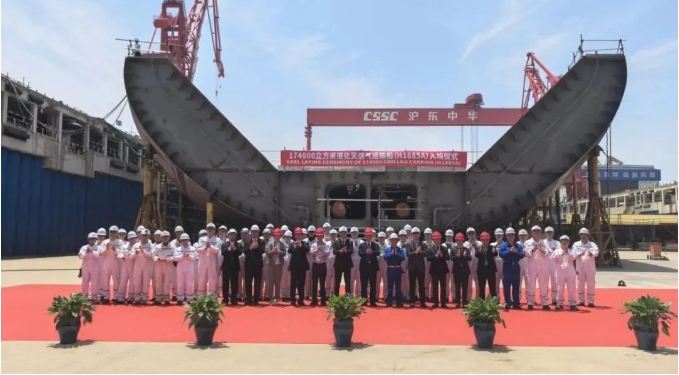 17.4萬立方米LNG運輸船“遠海奮進”號(Ocean Inspiration)在滬東中華新廠區正式命名。