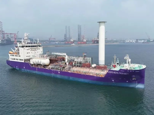 近日,中國船舶集團旗下大連造船為挪威北極光公司建造的全球首制7500立方米液態(tài)二氧化碳運輸船1號船完成柴油試航任務。