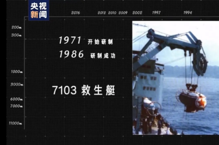 中國第一艘載人潛水器——7103救生艇研制成功。雖然它只能下潛300米,航速也只有四節,但也是那個年代最先進的救援型載人潛水器。