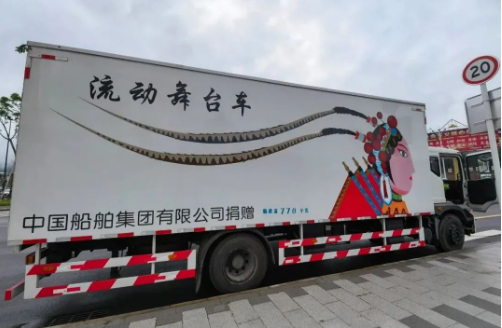 在中國船舶廣場揭牌儀式現場,一輛印有中國船舶集團有限公司捐贈的流動舞臺車格外醒目,工作人員告訴記者:“過去送文化下鄉巡回演出,由于需要不斷改變巡演地點,刮風下雨就只能‘望雨興嘆’,現在有了移動舞臺車,10分鐘內就將所有設備安裝到位,并且車內預留了燈光、聲音、字幕、幕布、電源等接口,具有很好的擴展性,車上的舞臺滿足了專業演出的需求,可以讓整個演出更具表演性,舞臺車可以直接開進百姓家,鄉親們家門口就能看表演,感謝中國船舶集團讓文化下鄉不再難。”勐臘縣民族文化工作隊隊長安飄感激地說:“感謝中國船舶集團對邊疆文化的關心,我們一定會守好文化邊疆!”。