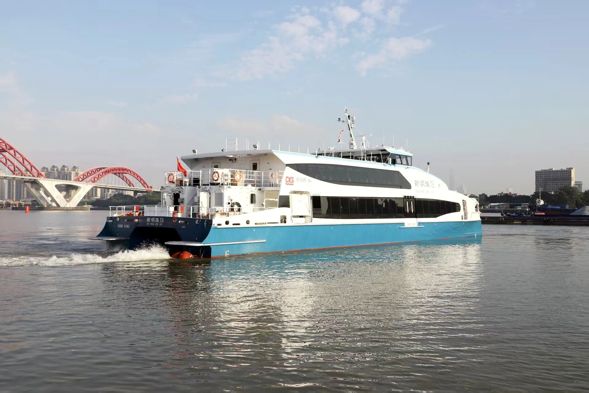 11月10日,中國香港新渡輪離島項目最后一艘“新明珠13”號500客位鋁合金高速客渡船在廣州番禺舉行完工送船儀式,標志著該項目圓滿收官。